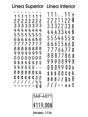 Monarch 1136 ® Numeric Label Gun and Labels - Uline Monarch 1136 ® Numeric Label Gun and Labels Quick and accurate marking. Price or label incoming inventory and merchandise. Drop/load feature for fast, easy loading of labels. Uses 3/4" x 5/8" Monarch labels. Sold separately. Free ink roller included with each gun and each box of labels. View Character Key. View video.