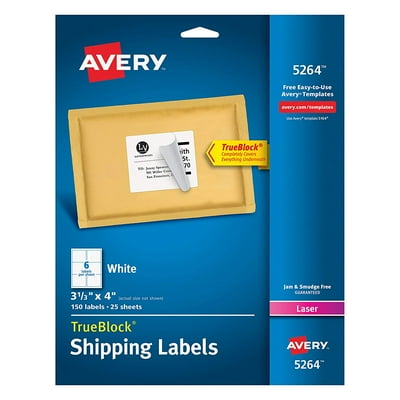 Avery Shipping Address Labels,Laser Printers,150 Labels, 3-1/3x4 ... Avery Shipping Address Labels,Laser Printers,150 Labels, 3-1/3x4, Permanent Adhesive, TrueBlock,5 Packs (5264) Visit the AVERY Store 4.8 out of 5 stars 2,529 ratings