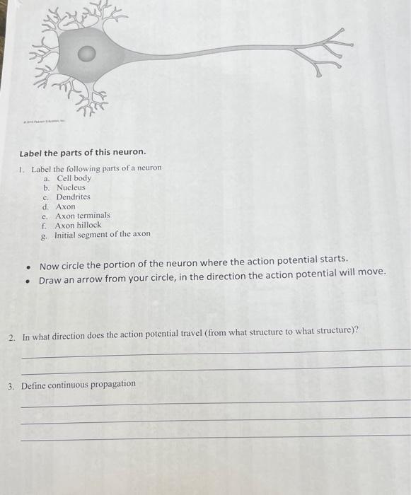Draw a labeled diagram of a neuron. - tutorialspoint.com A neuron also known as a nerve cell is the structural and functional unit of the nervous system. It carries messages between the brain and other body parts. lt has three components: the dendrites, the cell body, and the axon. The main functions of the different types of neurons are: Answered: Draw a neuron, label its parts, and… | bartleby A: Neuron is the structural and functional unit of the neural system. A neuron is a microscopic… Q: Diagram and label the basic features of a neuron,indicating where information is received and where… A: Neurons are an essential component of the nervous system whose function is to transmit information… Parts Of Neuron Labeled : Draw A Labelled Diagram Of A Neuron Label the parts of the neuron with the correct title: Myelin sheath nodes of ranvier. The peripheral nervous system (pns), which consists of the neurons and parts of neurons found outside of the cns, includes sensory neurons and motor neurons. The basic unit of the nervous system is a nerve cell, or neuron. Nervous System - Label the Neuron - TheInspiredInstructor.com Nervous System - Neuron: Nerve Cell. Choose the correct names for the parts of the neuron. (6) This neuron part receives messages from other neurons. (7) This neuron part sends on messages to other neurons. (8) This neuron part gives messages to muscle tissue. (9) This neuron part processes incoming messages. (10) This neuron part contains ...