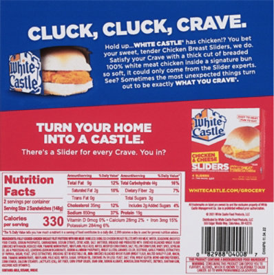 PR White Castle Classic Cheese Sliders. 16 count 29.28 oz Refer to the product label for full dietary information, which may be available as an alternative product image. ... WARNING - California Proposition 65. WARNING: CONSUMING THIS PRODUCT CAN EXPOSE YOU TO FURFURLY ALCOHOL, WHICH IS KNOWN TO CALIFORNIA TO CAUSE CANCER. ... I've never really been a fan of White Castle burgers, however I really ...