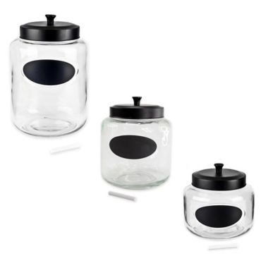 Glass Canister Set for Kitchen or Bathroom with Airtight Lid and Chalkboard Labels, Apothecary Glass Food Storage Jars - Set of 3 Cookie Jars, Candy, ...