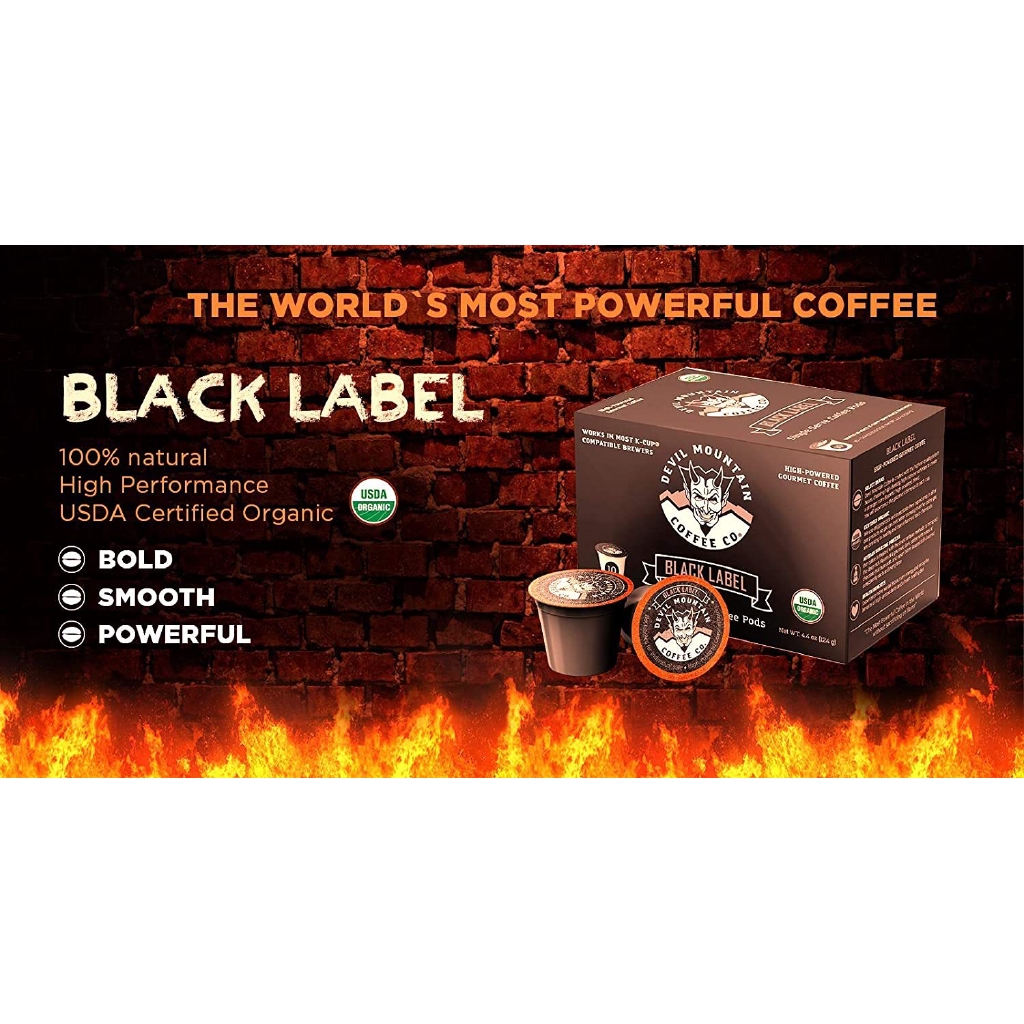 Caffeine in Black Label Brewed Coffee Devil Mountain Coffee Black Label K Cup Coffee Pods, Dark Roast, Single-Serve Strong High Caffeine Coffee, USDA Organic, Fair Trade, Gourmet Artisan Roasted, Strongest Coffee in the World, 20 Count ... Is Black Label Brewed Coffee high in caffeine? Black Label Brewed Coffee contains 129.58 mg of caffeine per fl oz (438.17 mg per 100 ml). A 12 ...