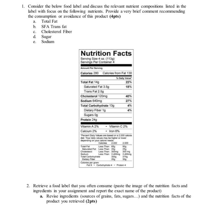 Food Labels | CDC - Centers for Disease Control and Prevention In general, eat more foods that are higher in vitamins, minerals (such as calcium and iron), and fiber. Eat fewer foods that are higher in added sugars, saturated fat, and sodium (salt), and avoid trans fat. Keep in mind that the % Daily Value of each nutrient, such as total fat of 10% in the example below, is based on eating 2,000 calories a day. pe unit 9 lesson-reading food labels Flashcards | Quizlet The Nutrition Facts Label (Food Label) can help you learn about the nutrient content of many foods in your diet. It also enables you to compare foods to make healthy choices. Select one: True. False. true. The nutrients you should get 100% DV of on most days are dietary fiber, vitamin A, vitamin C, calcium, and iron. Changes to the Nutrition Facts Label | FDA - U.S. Food and Drug ... The Nutrition Facts label on packaged foods was updated in 2016 to reflect updated scientific information, including information about the link between diet and chronic diseases, such as obesity...